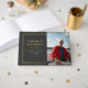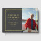 Dark grey funeral guestbook. Add a photo! Forever in our hearts memorial service guestbook in dark grey printed with gold foil and a photo of your loved one. Ask your friends and family members to share a memory of your loved one in this simple funeral guestbook in dark grey with a photo on the cover and custom text in gold foil.