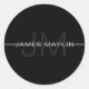 Dark Grey Monogram, Name & Geometric Stripe Classic Round Sticker