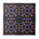 Modern vibrant decorative ceramic tile design featuring a seamless pattern made of geometric shapes in purple, pink and back on a dark grey background.