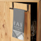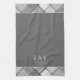 Dark Grey Plaid Personalized Name Monogram Kitchen Towel