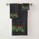 Dark Grey Plaid with Holly Sprigs Bath Towel Set