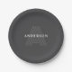 Dark Grey Retro Modern Monogrammed Name Paper Plate