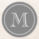 Dark Grey Solid Colour Custom Monogram Round Paper Coaster