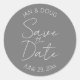 Dark Grey Stylized Wedding Save the Date Classic Round Sticker