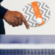 Dark Grey and White Large Chevron Zig Zag Pattern, Pumpkin Orange Ribbon Name Monogram Label