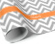 Dark Grey and White Large Chevron Zig Zag Pattern, Pumpkin Orange Ribbon Name Monogram Label