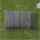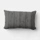 An outdoor lumbar pillow with a photograph of dark grey barn boards or wooden siding.
