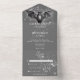 AVAILABLE WITH A QR CODE OR WITH OR WITHOUT DINNER SELECTION OPTIONS. Step into the enchanting realm of our Halloween wedding invitation, where love meets glamourous mystery in a spellbinding celebration. Against a backdrop of bewitching charcoal grey, this invitation sets a dazzling yet dark tone for your special day. A softly glittered bat with wings spread sits atop your wedding details, surrounded by a cluster of sparkling loose diamonds, adding glam to the dark beauty of the design. Capture the spirit of Halloween and set the stage for a wedding that's as hauntingly beautiful as it is unforgettable. Choose our Halloween wedding invitation to embark on a journey into the shadows and create memories that will last a lifetime. Created by Simply Farmhouse Press.