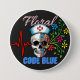 Dark Humour "Floral Code Blue" Med Skull Nurse 3 Inch Round Button