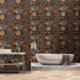 Dark Jungle Botanical wallpaper brings layered, maximalist energy to your space. Stylized botanicals, deep florals, and ornamental medallion motifs unfold across a rich, dramatic background, creating a moody statement wall with depth and movement. Earthy tones of espresso, olive, ochre, and slate give the pattern a grounded, eclectic character that feels both global and modern. Designed for bold interiors, creative studios, dining rooms, bedrooms, or anywhere you want texture, drama, and visual richness.