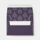 Dark Lilac Damask R.S.V.P. return envelope, with blue damask pattern on the inside and dark lilac colour on the outside.