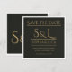 Announce your wedding date in dramatic style with this ultra-luxurious black and gold save the date card. Featuring an elegant monogram and refined gold typography on deep matte black, this card sets the tone for a formal, black tie celebration from the very first announcement.