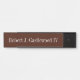 Dark Mahogany Colour Hanging Wall Nameplate Door Desk Name plate with White Lettering shown with Black Frame.