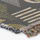 Sophisticated mid-century geometric pattern blanket featuring layered circles, arches, triangles, and rectangles in forest green, burnt orange, ochre, and cream on a black background. Rich textures and retro-modern shapes create a bold design ideal for Bauhaus lovers, vintage décor fans, and anyone drawn to moody modern style.