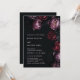 This elegant dark moody floral wedding invitation features purple and red peony flowers on a black background. Dark romantic aesthetic wedding invitation. With a scannable qr code on the backside.