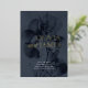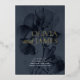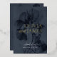 Elegant dark moody wedding save the date invitation template with botanical overlay artwork, names pressed in real gold foil. Shades of very dark blue - almost black - give this wedding stationery design a unique and sophisticated feel. This is a fully customizable wedding template.