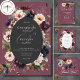 Dark Moody Burgundy Oval Floral Frame Wedding Save The Date