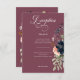 ndulge in the captivating allure of our dark and moody burgundy wedding reception card, where sophistication meets romance in a harmonious blend of colour and elegance. Against a backdrop of rich burgundy, this design sets a dramatic tone. Your details take centre stage, surrounded by a lush arrangement of watercolor poppies, zinnias, and other flowers in shades of navy blue, burgundy, soft blush, and gold, complemented by dark sage green foliage. Each petal and leaf whispers tales of passion and enchantment, setting the stage for a celebration that's as memorable as it is magical. Created by Simply Farmhouse Press.