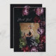 This elegant dark moody floral wedding thank you card features dark red and purple peony flowers and a custom muted colors photo. You can also delete the transparent black layer that covers the photo and makes the colors muted.