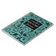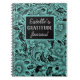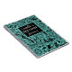 On a blue green teal backdrop are black sketched floral foilage for contrast along with a black square where you can personalize your journal.