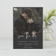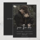 This wedding save the date card design features a dark, moody theme that is simple, yet stunning. A dark charcoal black background is the perfect canvas for your favourite couple photo. The simple details appear in white text against the charcoal background. Unique and elegant, this design can be used for any season. Created by Simply Farmhouse Press.
