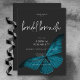 This wedding shower invitation design features a dark, moody theme that is simple, yet stunning. A dark charcoal black background is the perfect canvas for a single teal blue moth, its wings spread for flight. Unique and elegant, this design can be used for any season. Created by Simply Farmhouse Press.