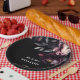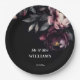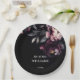 Dark moody noir elegant gothic all in one wedding personalized tableware editable template plates, black burgundy peonies on dark background wedding party plates