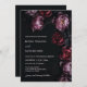 This elegant dark moody floral wedding invitation features purple and red peony flowers on a black background. Dark romantic aesthetic wedding invitation.