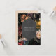 Black hexagon shape as the body over dark jewel toned florals inspired by dutch masters on the back. Customize the background colour on the front and the back. All of the text is editable.