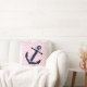 Dark Nautical Blue Anchor Pink Zigzag Chevron Throw Pillow