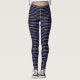 These modern leggings feature a dark striped pattern in navy blue and black with thin white stripes in between.