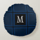 Dark Navy Blue Custom Single Initial Striped Round Pillow