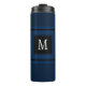 Dark Navy Blue Custom Single Initial Striped Thermal Tumbler