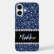 Dark Navy Blue Glitter & Gems, Name and Monogram C Case-Mate iPhone Case