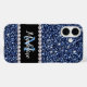 Dark Navy Blue Glitter & Gems, Name and Monogram Case-Mate iPhone Case