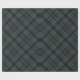 This elegant and contemporary gift wrapping paper showcases a plaid pattern in shades of green, dark blue, and red, creating a classy and nostalgic English holiday atmosphere. The paper is perfect for wrapping Christmas gifts in a classic colonial style and complements a charming country cottage or log cabin theme.