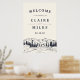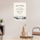 Bienvenue à vos invités dans votre mariage rustique, boisé ou de montagne avec notre affiche Mountain Sketch, avec une illustration esquissée de sommets de montagne, de pins et d'une rivière qui coule. Ajoutez vos noms, votre date de mariage et le texte d'accueil personnalisé en utilisant les champs fournis.