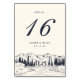 Rustic woodland chic table number cards feature a sketched illustration of mountain peaks, pine trees and a flowing river, beneath your table number, event date and additional custom text. Design repeats on reverse side. Coordinates with our wintry Mountain Sketch wedding invitation suite.