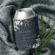 Dark Navy White Greenery Floral Bunch Wedding Can Cooler