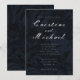 Modern victorian era vintage elegant script dark floral ornamental wedding invitation with a blue tint.