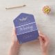 Elegant design for a periwinkle and white luxe wedding. Hex code #6E6EAC. Included is an RSVP with your invitation which is a postcard for simple quick answers. Don't forget to add a stamp to the return RSVP. Simple design that has a high class look.
