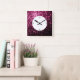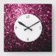Dark Pink faux shiny glitter sparkles with numbers Square Wall Clock