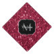 Dark pink red magenta faux sparkles Monogram Graduation Cap Topper