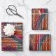 Drape your gifts in mystery and magic with this dark plum flat wrapping paper set, featuring an abstract striped circle design filled with surreal domes, stylized trees, and a retro rainbow sky. The saturated palette—eggplant, coral, teal, saffron—creates a luxe, dreamlike atmosphere, perfect for celebrations that deserve something unexpected.