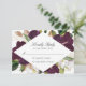 Stylish and elegant floral RSVP cards featuring your wedding details surrounded by a geometric frame of dark plum watercolor flowers and green leaves. Designed to coordinate with our Dark Plum Floral wedding collection.