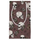 Hand-drawn in black ink, this gift bag features a beautiful pattern of skulls, roses and spiderwebs in cream and blush tones, all against an elegant dark plum background.