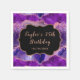 This elegant and glamourous birthday napkin features a dark purple and pink agate marble background with faux pink glitter accents. The text combines handwritten script and modern sans serif fonts for a classy and sophisticated look. The sequins and distressed texture creates the perfect blend of chic and grunge.