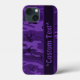Camouflage pattern smartphone case in dark purple with editable text field. Customize with up to 15 letters, numerals or symbols.