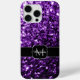 Dark purple faux glitter sparkles bling Monogram Case-Mate iPhone Case