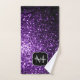 Dark Purple faux shiny glitter sparkles Monogram Bath Towel Set